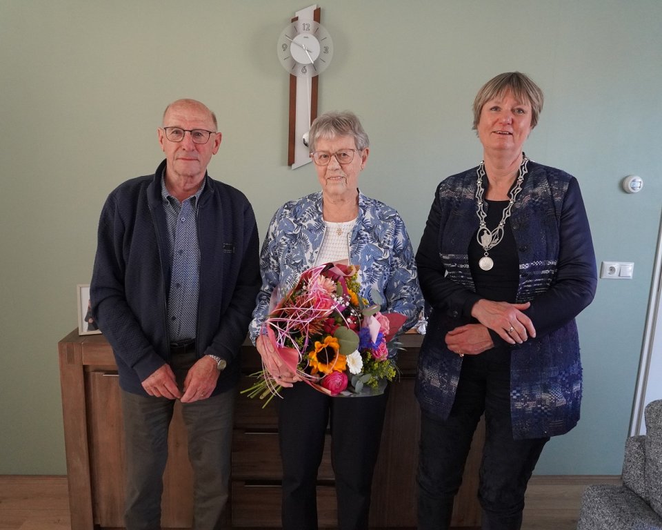 Afgelopen zondag 12 april vierden Annie Kooiker en Henk Metz hun diamanten huwelijk. Namens gemeente Harlingen wenste burgemeester Ina Sjerps het echtpaar nog veel geluk en mooie jaren samen.