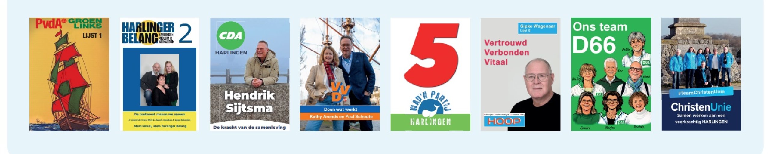 De voorzitter van het centraal stembureau voor verkiezing van de leden van de gemeenteraad van Harlingen; gelet op artikel 117 van de Kieswet; maakt bekend dat voor de op 18 maart 2026 te houden verkiezing de volgende geldige kandidatenlijsten zijn ingeleverd: