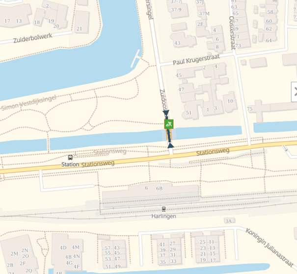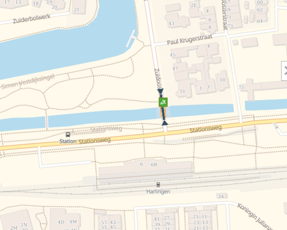 Wegafzetting Zuidoostersingel ter hoogte van de Stationsbrug